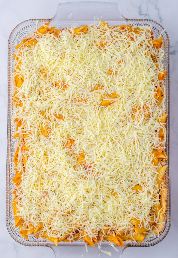 - Uncover and top with cheese. Remove the foil and sprinkle the remaining cheese on top.