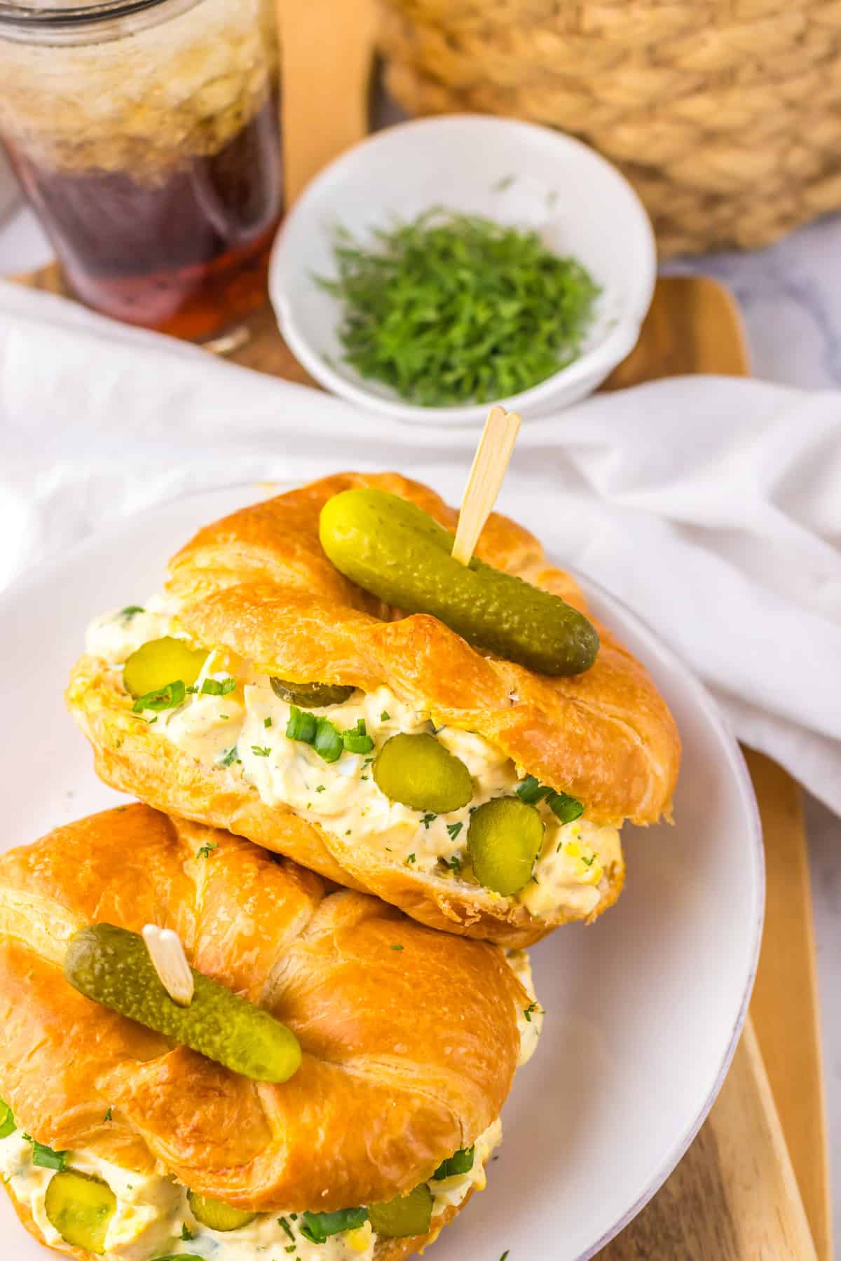 I like to serve dill pickle egg salad as a sandwich on thick sliced bread, like sourdough sandwich bread, or croissants. For a lighter option, it’s great on lettuce wraps.