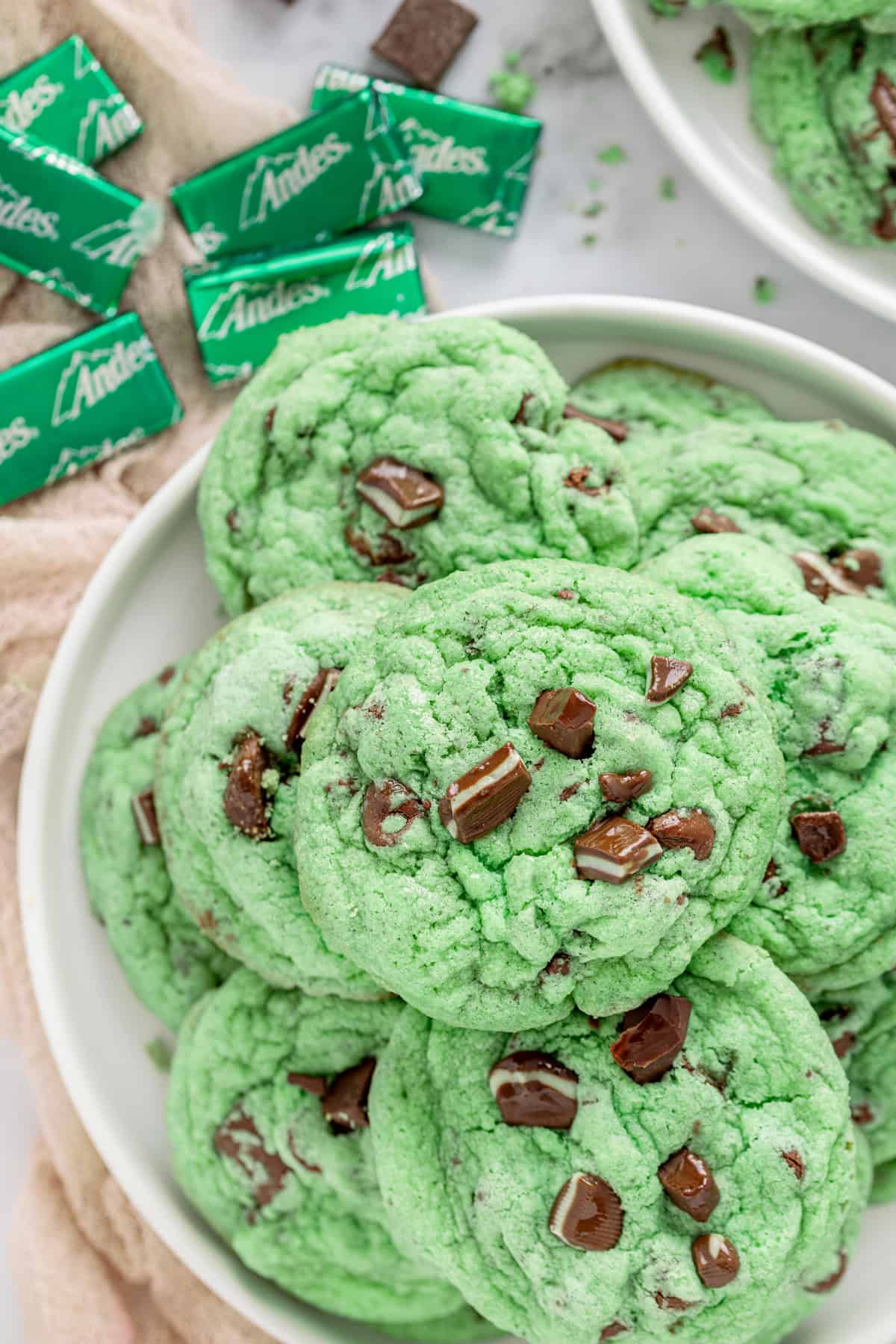 These cookies are actually my go-to when I’m craving that mint chocolate flavor, but I’m short on time. They’re quick and easy to make, require just a handful of ingredients, and have the perfect soft, chewy texture that I love in cookies. The bright green color makes them ideal for St. Patrick’s Day and Christmas, though I certainly enjoy them year-round.