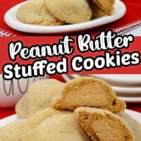 Soft peanut butter cookies stuffed with a creamy peanut butter surprise! These peanut butter stuffed cookies are a favorite with everyone that has tried them, and they are so simple to make.