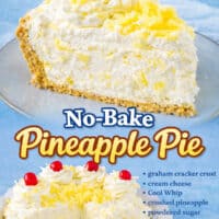 This No Bake Pineapple Pie is smooth, creamy, and light with a filling made of cream cheese and cream cheese, while crushed pineapple adds a tropical flair. Made with just 5-ingredients and 10 minutes of prep, it’s the perfect dessert for summer.